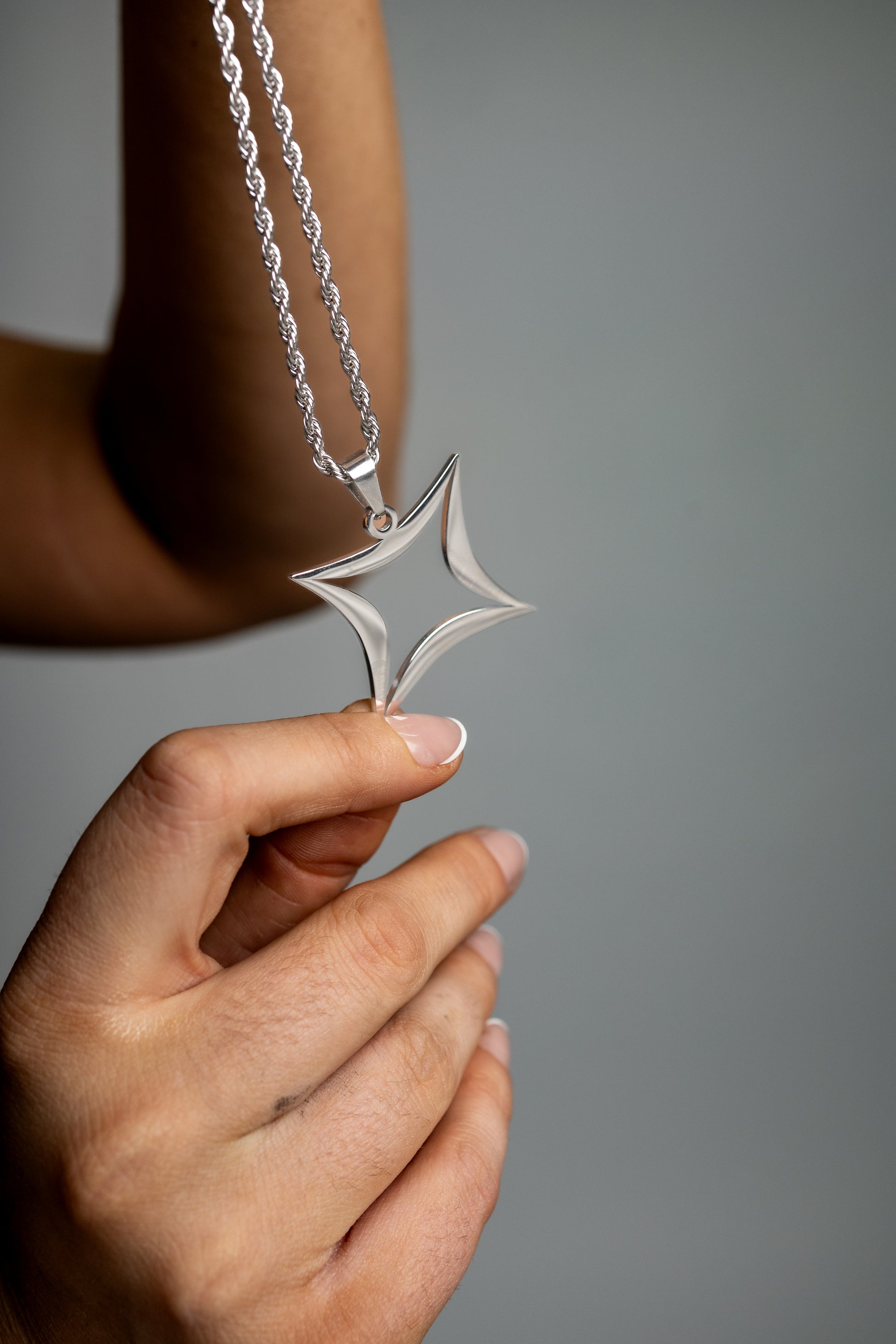 The frame chain features our signature icon as a polished stainless steel pendant on a rope chain design.